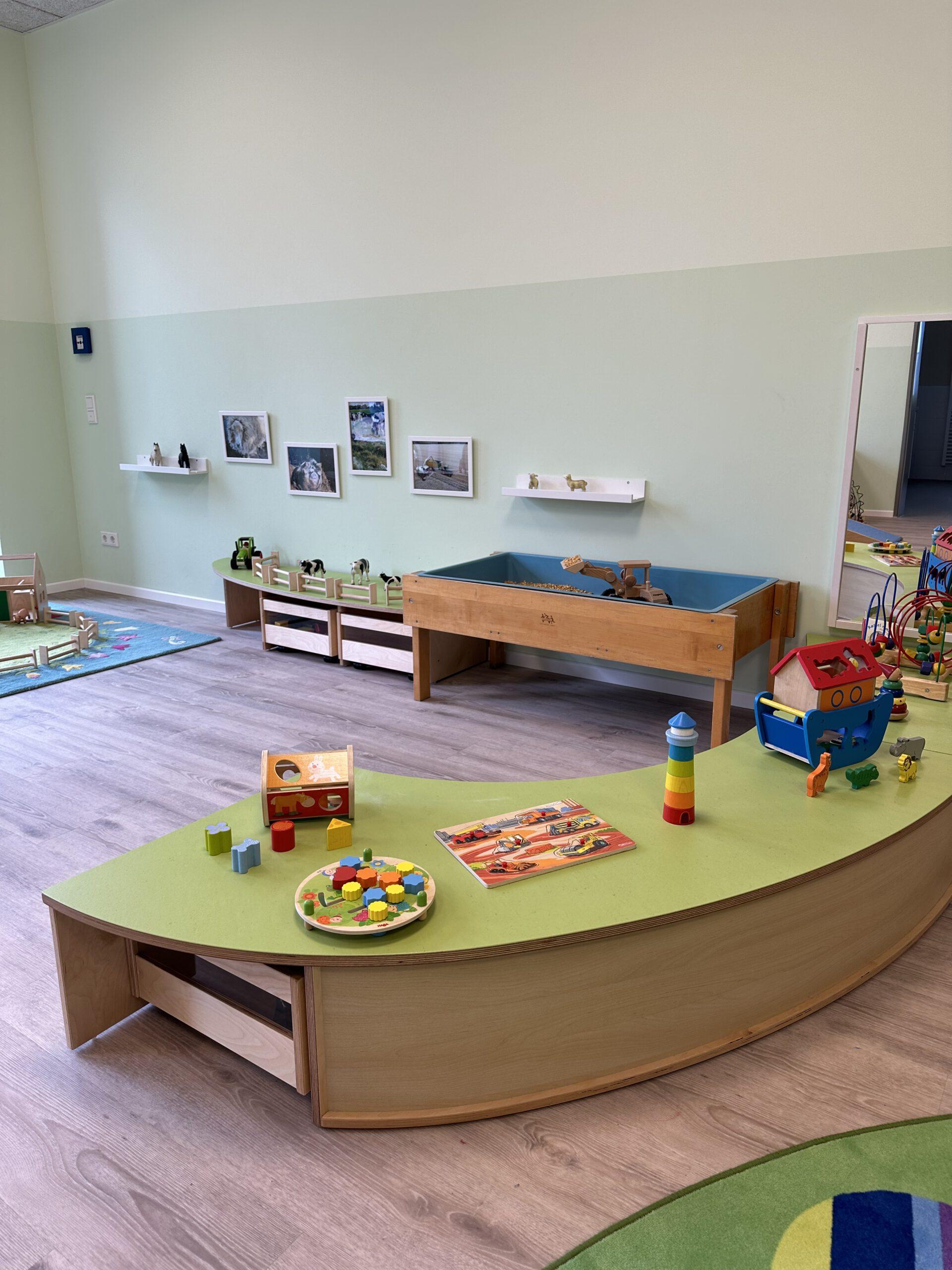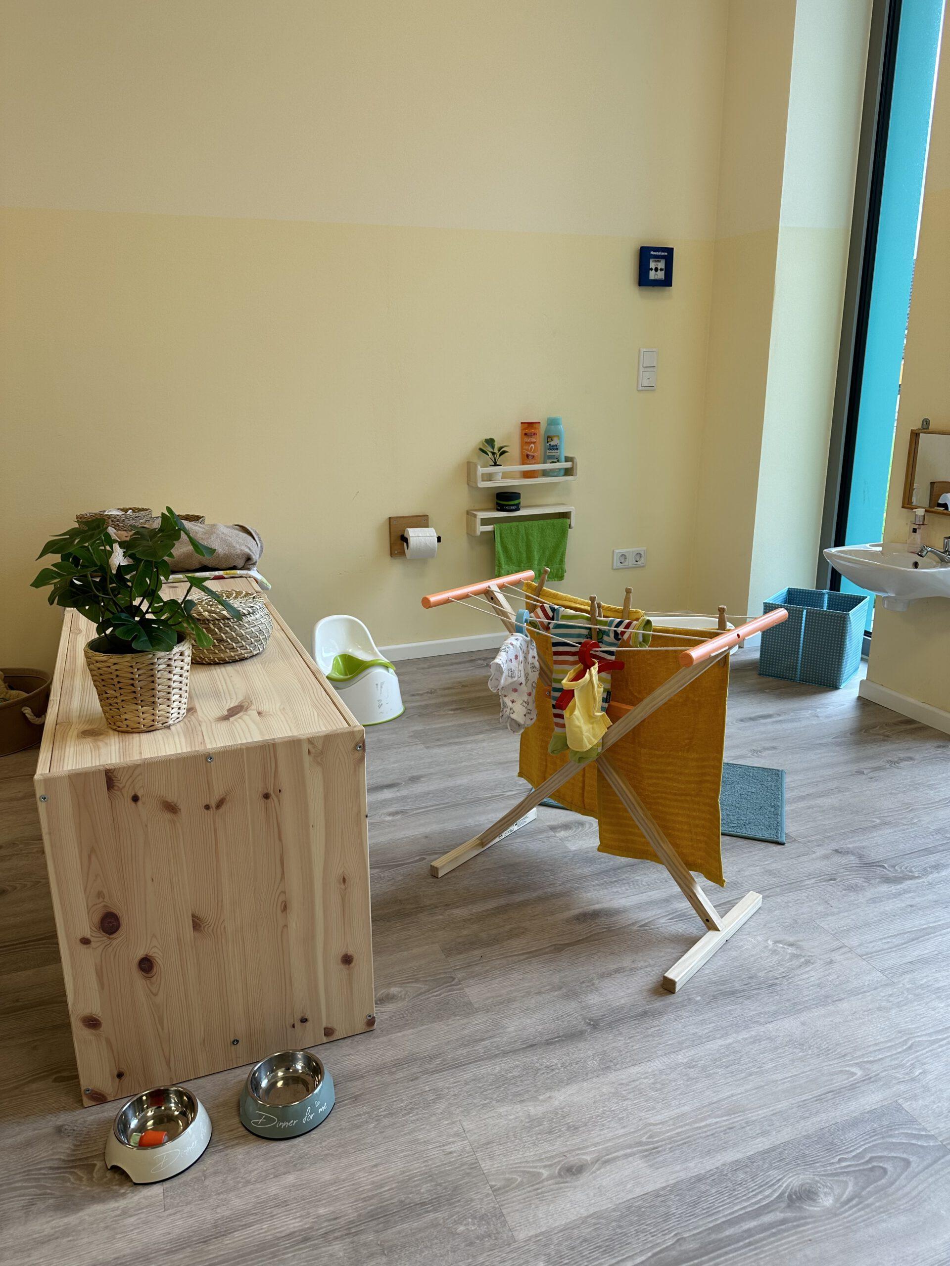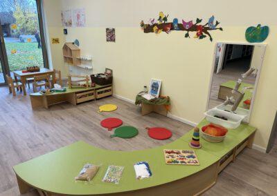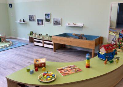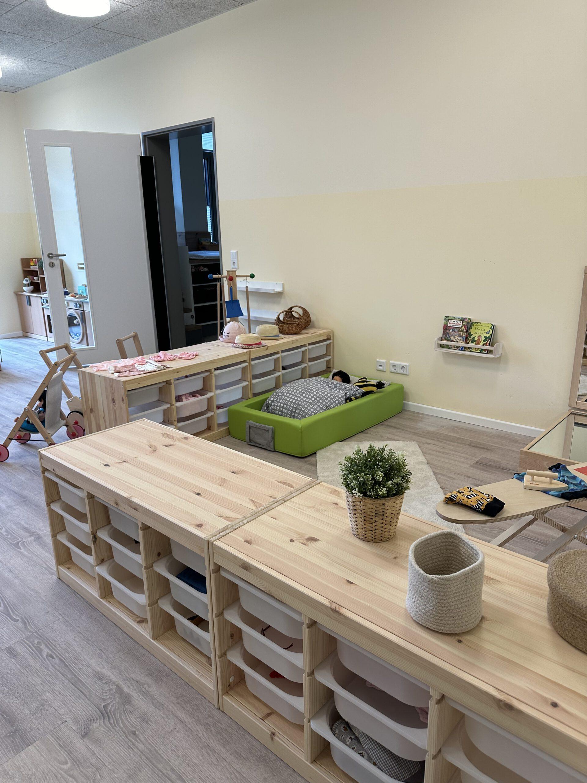 Unsere Arbeit in der Krippe ist von Anfang an, auf Fürsorge, Zuwendung und Verlässlichkeit ausgelegt. Krippenarbeit ist Bindungs- und Beziehungsorientiert und nicht angebotsorientiert. Sprich, die Bedürfnisse bei Kindern unter 3 Jahren, sind andere, wie die der Kinder zwischen 3 und 6 Jahren. Sie bekommen von uns volle Aufmerksamkeit, damit wir ihre Grundbedürfnisse stillen können, denn nur wenn das Kind sich zu 100% sicher und wohl fühlt, kann es dem natürlichen Bedürfnis der Erkundung nachgehen. Bei Kleinkindern steht mit an erster Stelle die Versorgung sicherzustellen. Sie können sich gerade am Anfang noch nicht selbstständig ausdrücken, dass sie Hunger oder Durst haben, bzw. eine neue Windel benötigen.