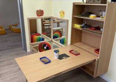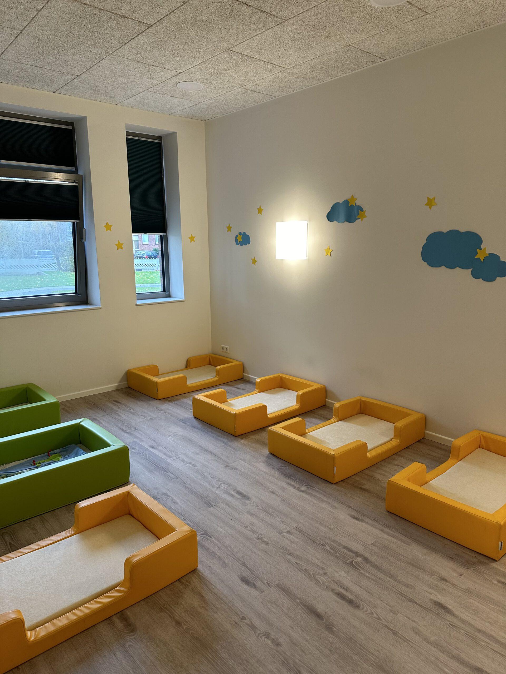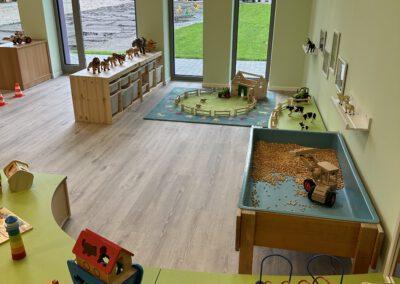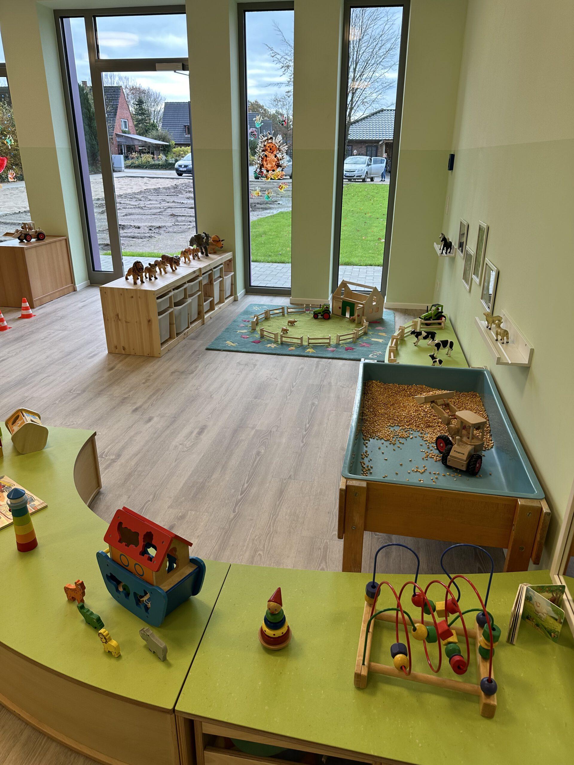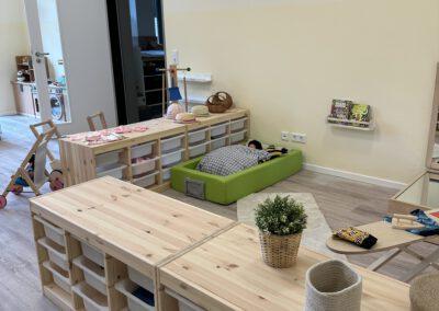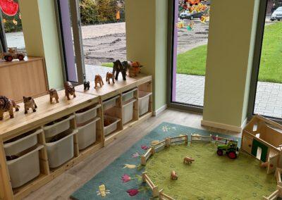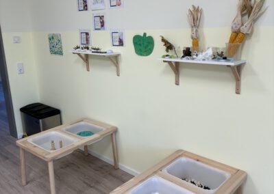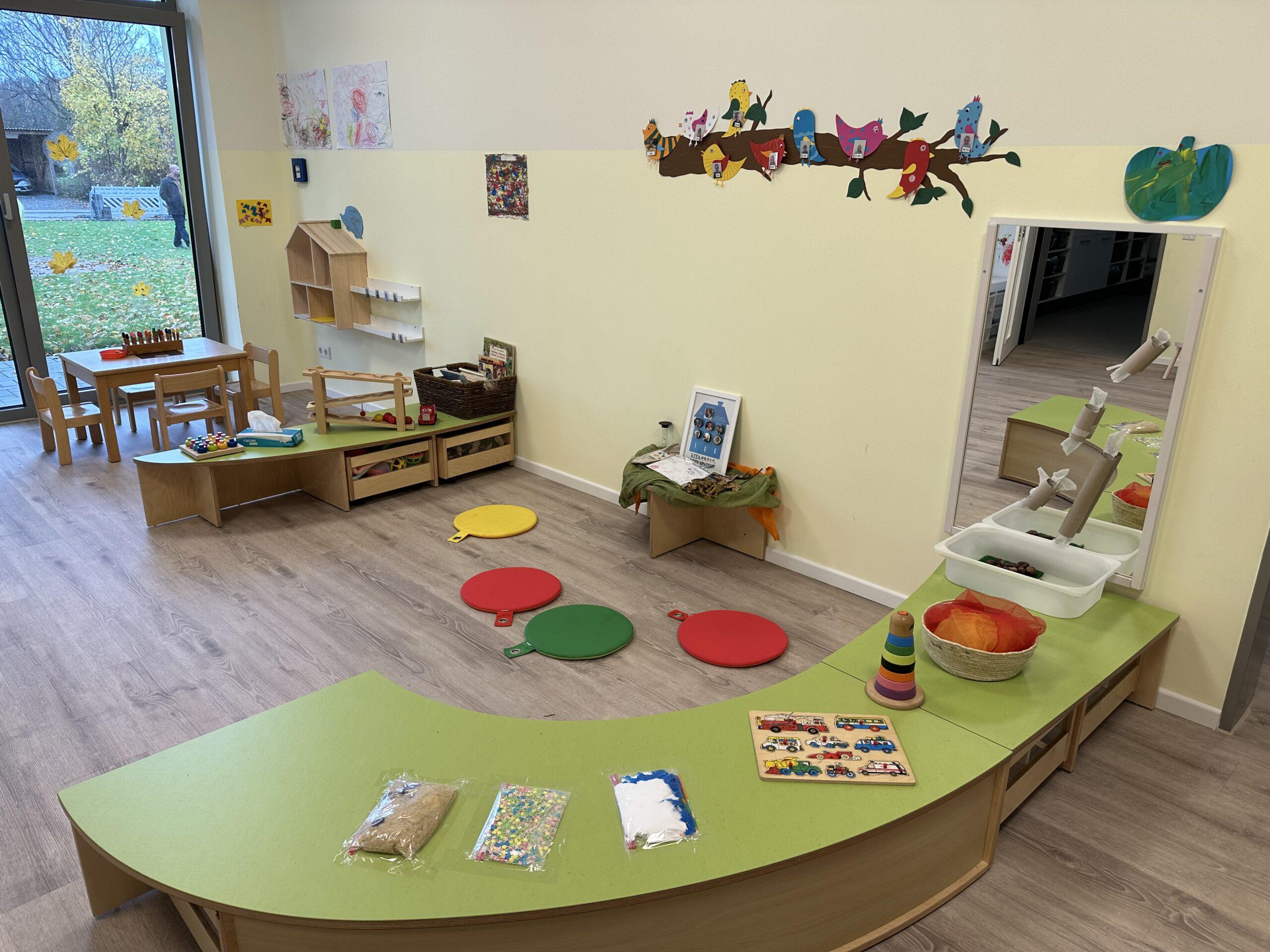 Unsere Arbeit in der Krippe ist von Anfang an, auf Fürsorge, Zuwendung und Verlässlichkeit ausgelegt. Krippenarbeit ist Bindungs- und Beziehungsorientiert und nicht angebotsorientiert. Sprich, die Bedürfnisse bei Kindern unter 3 Jahren, sind andere, wie die der Kinder zwischen 3 und 6 Jahren. Sie bekommen von uns volle Aufmerksamkeit, damit wir ihre Grundbedürfnisse stillen können, denn nur wenn das Kind sich zu 100% sicher und wohl fühlt, kann es dem natürlichen Bedürfnis der Erkundung nachgehen. Bei Kleinkindern steht mit an erster Stelle die Versorgung sicherzustellen. Sie können sich gerade am Anfang noch nicht selbstständig ausdrücken, dass sie Hunger oder Durst haben, bzw. eine neue Windel benötigen.